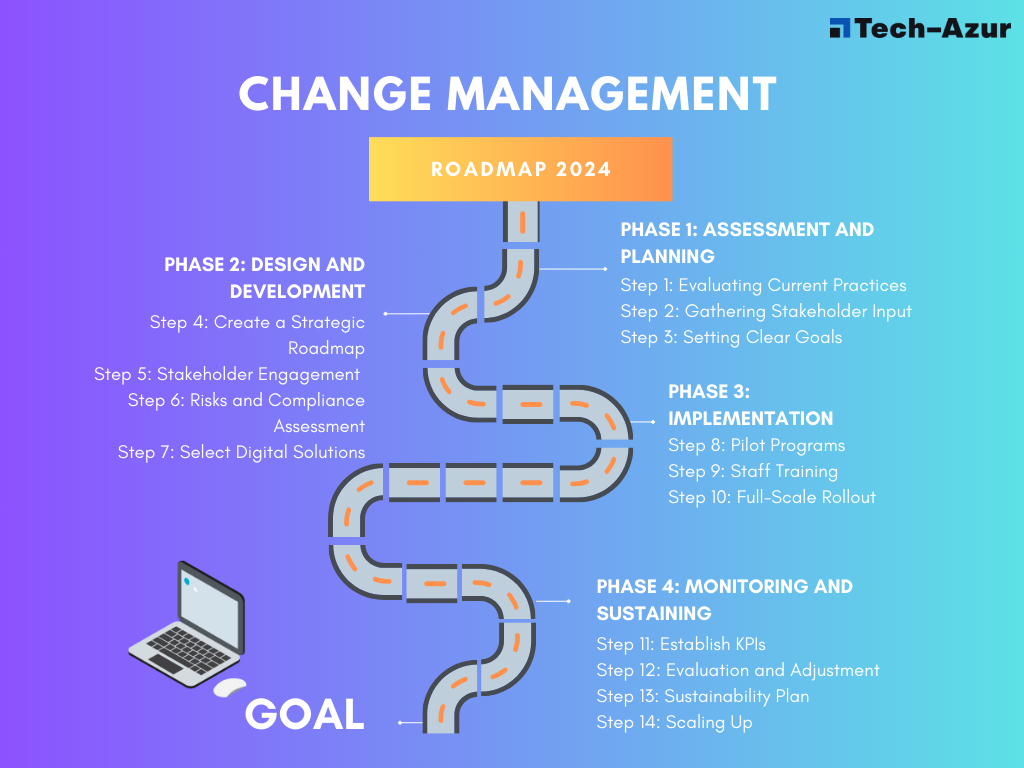 Once the need for change is clear, the next step is implementing effective change management strategies to facilitate a smooth transition. One can start by creating a detailed roadmap outlining the steps required to transition to digitally advanced mental health services, including timelines, resource allocation, and specific milestones to measure progress.